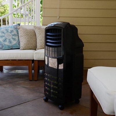 See all the devices listed above below. Note that all of them (apart from the evap cooler) run on DC, so you could theoretically leave off the AC inverter and run directly off 12V DC (shoot me an email if you have any questions).
